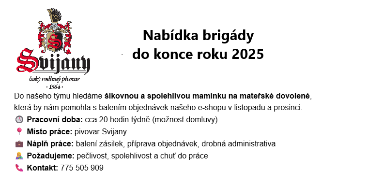 Pivovar – nabídka brigády pro maminku na mateřské dovolené