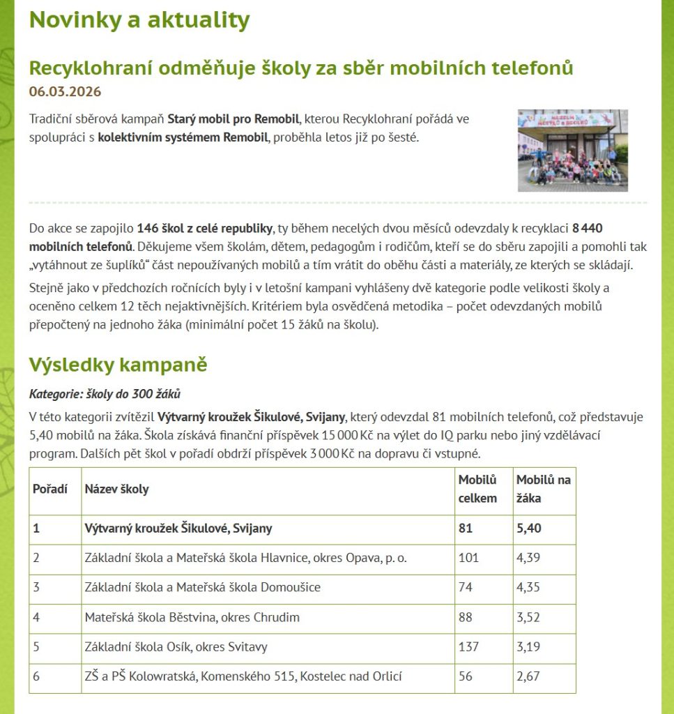 Šikulové získali vysoký finanční příspěvek za sběr mobilních telefonů – gratulujeme :-) Domov / Aktuality /
