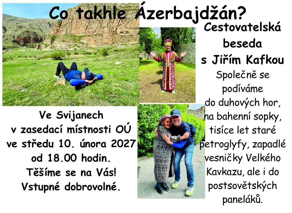 Co takhle Ázerbajdžán – Jiří Kafka Domov / Kalendář akcí / Datum 10. 2. 2027 Čas 18:00 - 20:00 Zasedací místnost Svijany 69