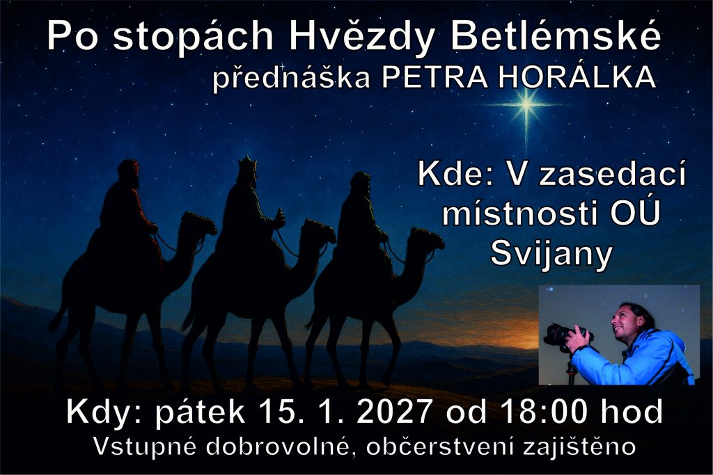 Po stopách Hvězdy Betlémské – Petr Horálek Domov / Kalendář akcí / Datum 15. 1. 2027 Čas 18:00 - 20:00 Zasedací místnost Svijany 69