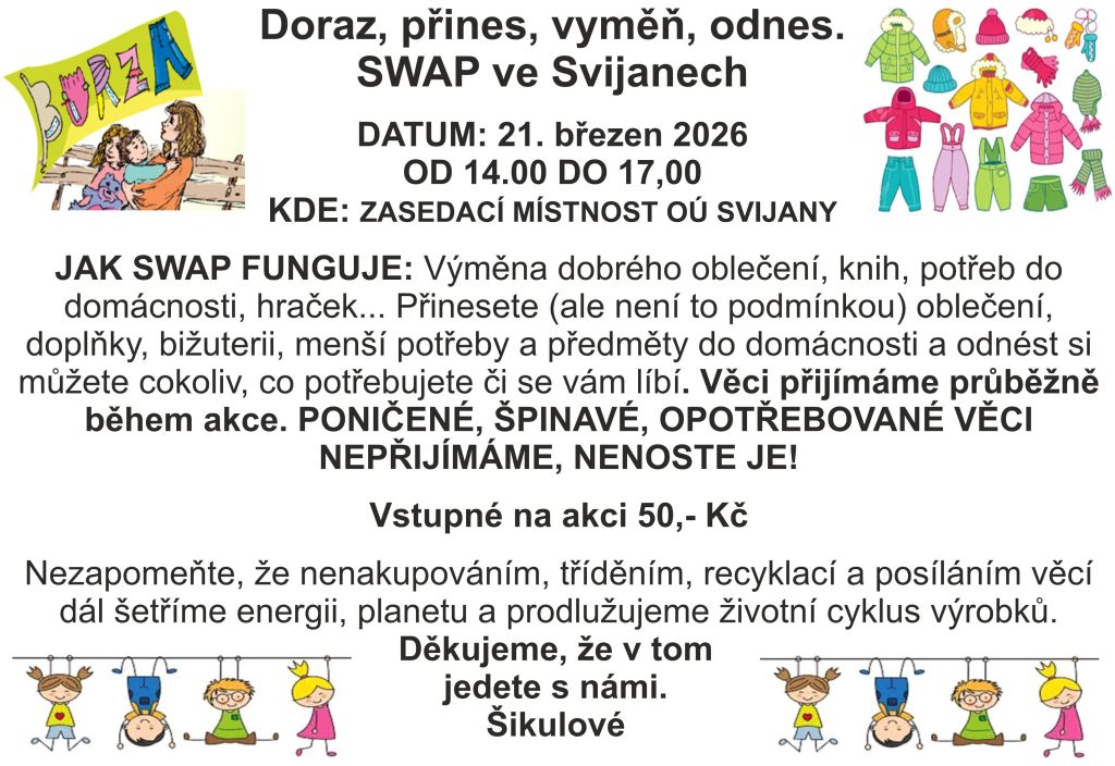 SWAP ve Svijanech Domov / Kalendář akcí / Datum 21. 3. 2026 Čas 14:00 - 17:00 Zasedací místnost Svijany 69
